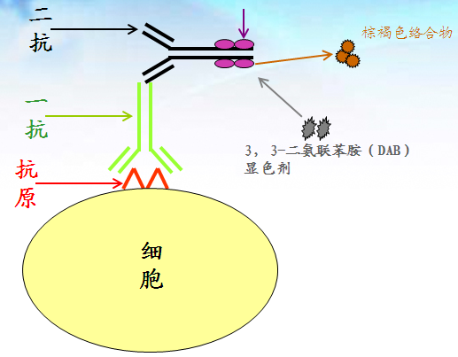 ?? 原理:利用抗原與抗體的特異性結(jié)合原理和特殊的標(biāo)記技術(shù),通過(guò)化學(xué)反應(yīng)使標(biāo)記抗體顯色,對(duì)組織細(xì)胞內(nèi)的特異性抗原進(jìn)行定位、定性、定量檢測(cè)的一門技術(shù)。
