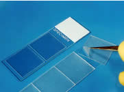 由特殊材質(zhì)的塑料制造,0.25mm厚,RNase and DNase free,憎水性的表面不捕獲或者結(jié)合探針。比一般的蓋玻片輕,摩擦力也小,便于液體在塑片表面的分散。HybriSlip™是即用型,使用前不需要再處理,其工作表面有潔凈的薄膜覆蓋,防止Rnase污染。HybriSlip™即使受到高溫影響,也平整不易卷曲,特別適用于玻片上原位雜交反應(yīng)、原位PCR、基因芯片分析等。