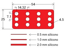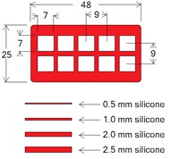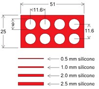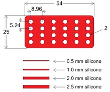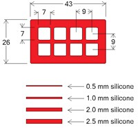 硅膠隔離貼片,又稱硅膠墊密片、試劑壩、硅膠貼封片等。可用于同一芯片上的多樣品反應(yīng),珍貴微量樣品的檢測(cè)等等。隔離片可使加樣更準(zhǔn)確,防止樣品間的交叉反應(yīng),且與配套雜交反應(yīng)蓋片合用還可使加樣更容易,反應(yīng)和雜交更均勻,防止反應(yīng)液揮發(fā),避免空氣中灰塵污染,是各種微陣列芯片進(jìn)行雜交或免疫反應(yīng)的理想輔助工具。該產(chǎn)品可以壓力粘貼,可干凈去除。硅膠屬于惰性材料,對(duì)生物樣品無不良影響,如果用來培養(yǎng)敏感性細(xì)胞,建議選用新型的無色透明的CultureWell硅膠貼片。