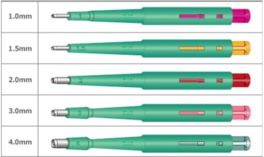 截取細微樣本的得力助手!光滑鋒利的刀頭,精巧的樣本彈射,以及拿捏部位的防滑設(shè)計等均獨具匠心!每種尺寸清晰標(biāo)于桿上,不同顏色的按鈕便于辨識。