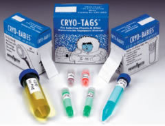 提供Diversified Biotech公司生產(chǎn)的大小不同,顏色各異的低溫標(biāo)簽。Cryo-Babies®系列標(biāo)簽是小標(biāo)簽,對(duì)應(yīng)的Cryo-Tags®是大標(biāo)簽。標(biāo)簽均由塑料聚烯烴制造,可以耐受常溫和低溫的貯存環(huán)境(液氮的-196°C也沒問題)。該系列標(biāo)簽可以粘貼于塑料、玻璃、金屬等物體表面,沸水浴100°C中以及干熱溫度達(dá)150°C時(shí)均不干裂、剝落和降解。此外,標(biāo)簽抗多種試劑、油、有機(jī)試劑、腐蝕性試劑以及其它可以導(dǎo)致剝落的潛在物。室溫下水中浸泡24小時(shí)以及100%濕度35°C環(huán)境下24小時(shí)均沒有問題。