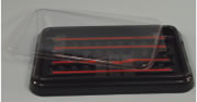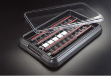 StrainTray的盒體呈黑色,由硬質(zhì)ABS塑料制造,對(duì)廣泛的化學(xué)試劑均惰性(氯代烴類除外)。盒內(nèi)支架有四個(gè)橫桿,玻片置于橫桿上,上面再壓上聚酯條,這樣可以很牢固的夾住玻片,盒體即使傾斜也沒有問題。橫桿之間的特殊設(shè)計(jì)可以防止液體飛濺。支架升高可以防水打濕玻片,另外升高的支架可以很方便的拿取玻片。盒體的底部有四個(gè)橡膠墊使其很穩(wěn)固地置于桌面上。盒子和盒子可以疊放,這樣可以節(jié)約很多空間。