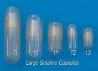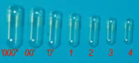天然的、硬質(zhì)明膠膠囊。小的膠囊常用作水溶性樹脂包埋的包埋模具,或者作為需要光固化樹脂的包埋用品(LR white 樹脂紫外固化)。明膠膠囊在0.5% HCl溶液里36-38°C時(shí)大約5分鐘溶解完畢(水中37°C或者人造胃液中大約2分鐘。大明膠膠囊Large Gelatin Capsules通??梢杂脕泶娣乓恍┬〉臉颖荆部梢宰鳛槭灠竦陌衲>呤褂?。