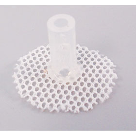 與所有標(biāo)準(zhǔn)的皮膚扣件一樣,小鼠的皮膚扣包括硅膠筒和圓形滌綸網(wǎng)狀小片兩部分,是動(dòng)物的手術(shù)中不可或缺的物件。硅膠筒內(nèi)徑為0.123英寸;滌綸網(wǎng)狀小片的直徑大約1英寸。皮膚扣作為導(dǎo)管通過皮膚的一個(gè)通道,協(xié)助完成導(dǎo)管的取樣或定量給藥工作。皮膚扣可替代小動(dòng)物的jacket,可保護(hù)導(dǎo)管通過點(diǎn)的皮膚免受損傷,降低感染的幾率。也可與外徑為0.124英寸的標(biāo)準(zhǔn)不銹鋼彈性細(xì)絲完美匹配。