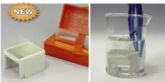 包括Wash-N-Dry蓋玻片架和Wash-N-Dry載玻片架,均可以高壓滅菌,可以透明、處理、染色、干燥一口氣完成。國(guó)際實(shí)驗(yàn)室最新流行款式,一般用燒杯來(lái)盛放染液或者洗液,再將架子浸入其中。蓋玻片架至多可以放置10片蓋片,最奇妙的是蓋片的大小不受制約,18mm,22mm,25mm,均可以從容放置。載玻片架可以放置12個(gè)標(biāo)準(zhǔn)載玻片。