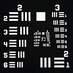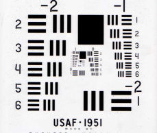 美國空軍1951年分辨力測試圖一直是世界上檢測垂直與水平分辨力的通用標(biāo)準(zhǔn),是符合MIL-STD-150A標(biāo)準(zhǔn)的分辨力測試圖案,由美國空軍于1951年創(chuàng)建。1951 USAF分辨力測試圖目前仍廣泛地應(yīng)用于測試光學(xué)成像系統(tǒng)(如顯微鏡和相機)的分辨能力。這種圖案包括幾組由三條短線構(gòu)成組合,短線的尺寸從大到小。成像系統(tǒng)無法辯明的最大短線組為其分辨能力極限。