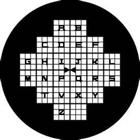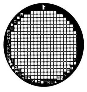 l 200目F2型坐標(biāo)載網(wǎng):粗的柵條分割出小的區(qū)域,每小區(qū)域內(nèi)是細(xì)柵條組成的9個(gè)孔,每一區(qū)域?qū)?yīng)一個(gè)字母編碼。