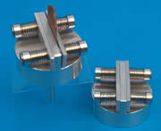 這種固定器是用來固定各種垂直的薄的樣本,它的直徑為25mm,厚度為10mm?;⒖谀軌驃A持最薄3mm厚的樣本。彈簧保證樣本垂直,以便對(duì)它的橫截面進(jìn)行研究。這種固定器對(duì)于研究硅片橫截面是非常有幫助的。通過適配銷和你的儀器連接。