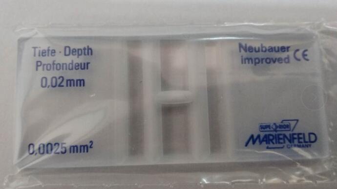 德國原裝進(jìn)口Marienfeld細(xì)菌計(jì)數(shù)板,改進(jìn)牛鮑型(Neubauer-improved),Petroff Hausser Counting Chamber,由特殊光學(xué)玻璃制成。每板有2個(gè)計(jì)數(shù)池,計(jì)數(shù)池深度為0.02mm,深度值誤差范圍1微米。因?yàn)槭艿缴疃认拗?,一般提供的產(chǎn)品是暗線型(線條蝕刻出來的)。用于細(xì)菌或者用于未稀釋標(biāo)本的精子計(jì)數(shù),帶有CE標(biāo)識(shí),滿足98/79EC條款,可以用于IVD。每套里面1個(gè)板,2個(gè)蓋片。