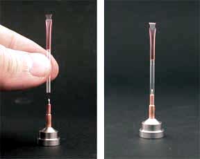 用帶有膠封的移液槍頭注射穩(wěn)態(tài)溶液于塑料管中,接著開放端插位于Base上的MicroMount。