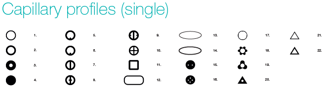 原產(chǎn)德國(guó)的多孔道毛細(xì)管,分為兩大類別,單管多孔道(single)和多管排列多孔道(multiple)。常見(jiàn)的圓形內(nèi)的多孔道排列,給出完美的幾何對(duì)稱,例如θ玻璃毛細(xì)管,這種對(duì)稱是毛細(xì)管中層流的產(chǎn)生所必需的,同時(shí)也能限制流動(dòng)。