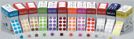 2.激光打印A4標(biāo)簽: Laser Tough-Spots®,A4紙張大小,每張上面有預(yù)制好的圓形小標(biāo)簽,顏色不同便于分類。